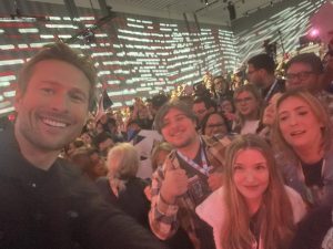 If you get to the stage fast enough, you have a chance to get an autograph or picture with the panel guests. Of course, I had to get something, so for the first panel I had a quick interaction with Glen Powell, ending the interaction with a selfie.